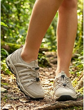 Chaussures de randonnée pour femmes - baskets en mesh respirant avec des touches de rose, idéales pour le trail, la randonnée et les aventures en plein air.