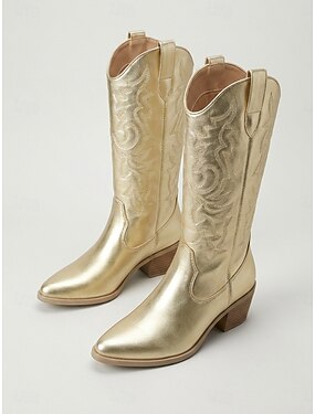 Femmes Quotidien Soirée Stiletto Bout Rond Élégant ancien Faux Cuir Boucle Dorée