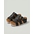Sandales plates noires pour femmes avec détail métallique, bout ouvert &Sandales à brides élastiques décontractées pour le quotidien, le jardinage et les voyages. &occasions décontractées