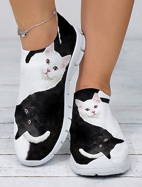 baskets décontractées à enfiler pour femmes avec un joli imprimé chat – chaussures en maille légères et respirantes pour un usage quotidien