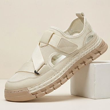 Sandales beiges d'extérieur pour hommes, à bout fermé, respirantes, légères et confortables, idéales pour les voyages, les vacances à la plage, les loisirs de plein air et les activités estivales.