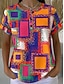 Tops Femme Waffle Tricot Texturé T-shirt Bloc de Couleur Graphique Tribal Stylé Classique Manches Courtes Henley Tops Quotidien Sports Orange Été Printemps