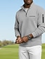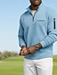 Homme Chemises Polo Gaufre Texturé Occasionnel Sport & Loisir Zip quart manche longue Mode Confortable Zip Up Avec Poches Automne Printemps & Automne Inter-saisons Coupe décontractée Blanche bleu