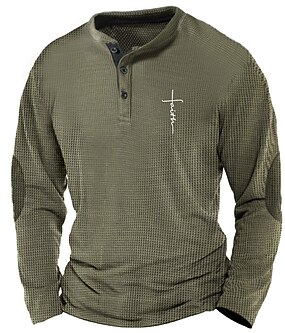 Homme Graphique Croix Foi Chemise Henley T-shirt gaufré manche longue Impression 3D Designer Simple Rétro Vintage Sport en Plein Air Fête Festival Printemps & Automne Bleu Marron Vert Véronèse Gris