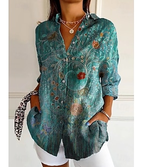 Chemise Femme Lin Comme Respirant Léger Chemise Tunique à Boutons Col Manches Longues Imprimé Floral Vintage Tropical Quotidien Tops Réguliers Travail Quotidien Imprimé Bleu Orange Vert Printemps