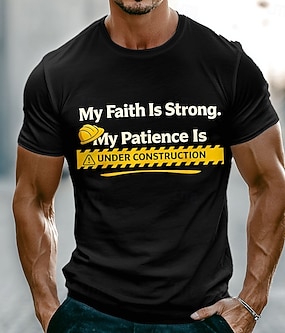 T-shirt graphique religieux chrétien Bible pour hommes 'Ma foi est forte ma patience est en construction' amusant humoristique casque de chantier à manches courtes coupe muscle décontracté vêtements