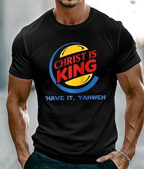 T-shirt homme « Christ is king have it Yahweh Burger logo parody humoristique chrétien et religieux » - coupe ajustée, manches courtes, style décontracté, tailles S, M, L, XL, XXL, XXXL