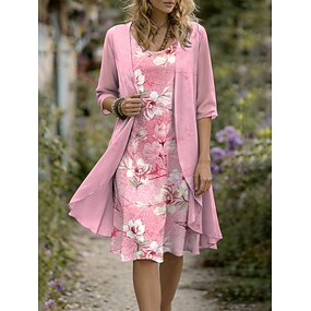 Femmes Robe Ensemble Robe trapèze Élégant Vacances Fleuri Graphique Superposé Imprimé Robe Midi Demi Manches Col ras du cou Quotidien Bleu Rose Claire Violet Été Printemps Coupe régulière