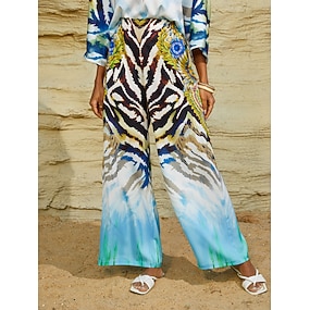 pantalon élastique en satin soyeux à motif tigre dégradé