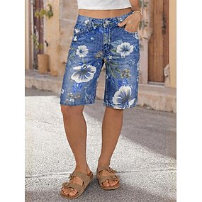 Femmes Bermuda Jeans Shorts Shorts d'été Vacances Mode Streetwear Longueur Genou Taille haute Fleuri Avec Poches Confort Respirabilité Confortable Non Elastique Quotidien Vacances Rue Bleu Ét