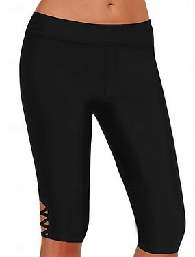 Femmes Maillots de Bain Short de Bain Caleçon extensible Taille haute Maillot de bain découpe sexy Cordon de serrage Dentelle Vacances Tenues de plage Couleur Unie Sans manches Maillots de bain