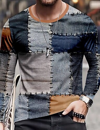 Homme Géométrique T-shirt manche longue T-shirt Impression 3D Col ras du cou Chemise Quotidien Designer Rue Occasionnel Jaune Bleu Violet Été Printemps Automne Vêtement Tenue S M L XL XXL XXXL