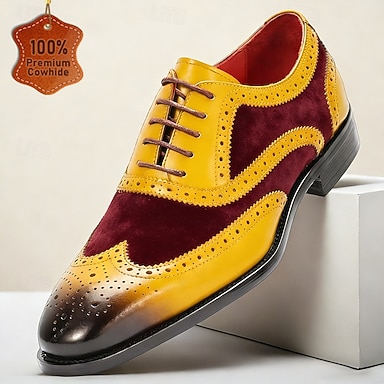 Homme Classique Occasionnel Cuir Cuir de vache pleine fleur italien Antidérapant À lacets Vin Jaune Bleu Printemps Toutes saisons