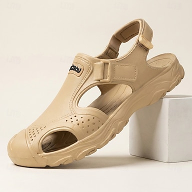 Sandales de sport beiges pour homme, à bout fermé, bride arrière ajustable, légères, respirantes et confortables, idéales pour les voyages, les loisirs de plein air, les activités estivales et le quotidien.