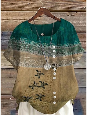 Femmes Chemisier Boutons Imprimé Graphique Animal ancien Tropical Élégant Manche Courte Hauts courts Fête Bleu Violet Vert Été Printemps