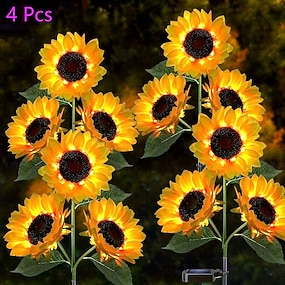Lot de 4 guirlandes lumineuses solaires étanches à 3 têtes en forme de tournesol, lampes LED décoratives pour jardin, cour, allée, pelouse, villa, terrasse, rue, ferme – éclairage d'ambiance pour les