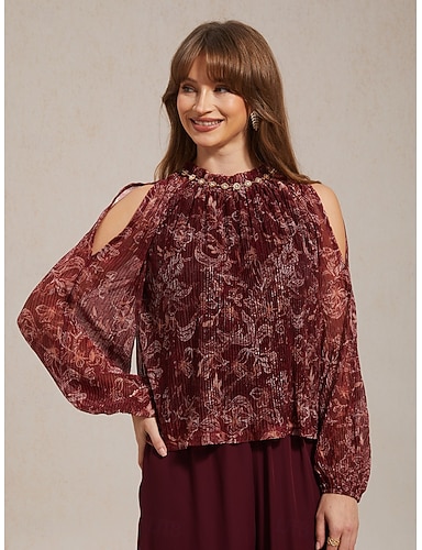 Femmes Chemise Chemise Bohème Chemisier transparent Plissé Métallique Fleuri Paisley Élégant manche longue Col Halter Col haut Top épaules dénudées Quotidien robe demoiselle d honneur Sortir Vin Ét