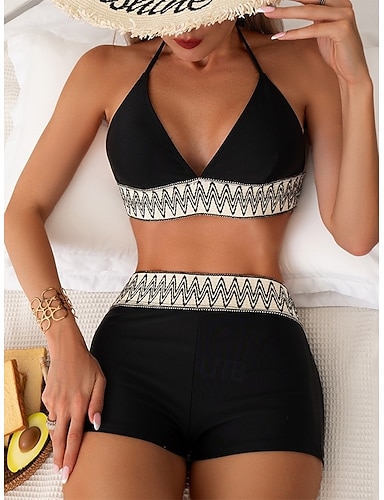 Maillots de bain 2 pièces bikini pour femmes shorts boho dos nu vacances à la plage couleur bloc géométrique col V sans manches