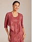 Femmes Haussements d'épaules Dentelle illusion Fleuri Élégant Manche 3/4 Col Bénitier Hauts courts Quotidien robe demoiselle d honneur Vêtements de vacances Prune Été Printemps Automne