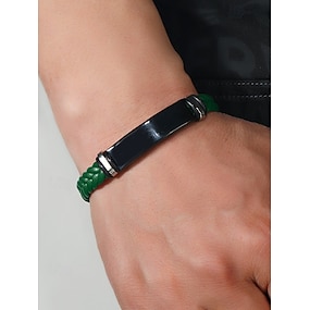 Bracelet en cuir tressé vert pour homme avec fermoir en acier inoxydable noir – élégant et durable, idéal pour un usage décontracté et quotidien