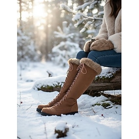Bottes d'hiver marron à lacets pour femmes, doublées de fourrure - bottes montantes avec col en fausse fourrure chaude, idéales pour les activités hivernales et les fêtes.