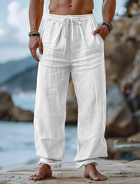 Homme Pantalons en Lin Pantalons Pantalon d'été Pantalons de Plage Cordon de serrage Taille Élastique Uni Respirant Léger Longueur complète Extérieur Quotidien Fête Vacances Mode Noir Blanche