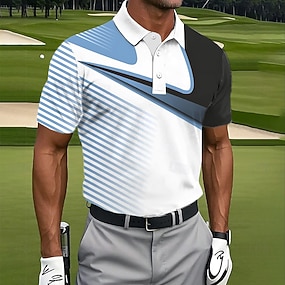 Homme Géométrique Golf Polos de Sport Manche Courte Polos Chemises à Col Occasionnel Athleisure Boutons Été Printemps Bleu Bleu Clair Rouge