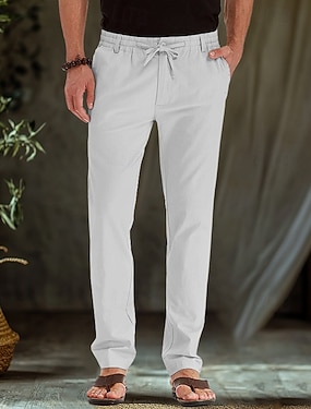 Homme Pantalons en Lin Pantalons Pantalons de Plage Avec Poches Cordon de serrage Uni Confort Respirant Quotidien Élégant Hip Hop Noir Blanche Micro-Élastique