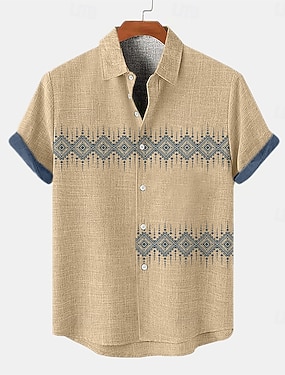 Homme Chemise Chemise en lin Chemises rétro Chemise vintage Chemise ethnique Ethnique Vacances Quotidien Kaki Gris Bleu clair Manche Courte Col Rabattu Été Printemps Vêtement Tenue