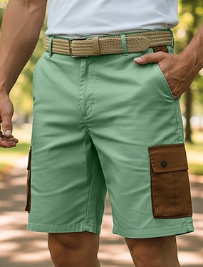 Homme Shorts cargo Shorts Shorts en Lin Shorts d'été Patchwork Avec Poches Bloc de Couleur Confort Respirant Court Occasionnel Quotidien Extérieur Mode Designer Vert Kaki Non Elastique