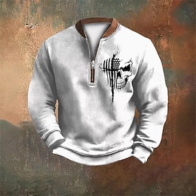 Homme Sweat-shirt Sweat-shirt quart de fermeture éclair Noir Blanche Rouge bleu marine Gris Demi-zip Bloc de Couleur Crâne Drapeau Américain Demi-zip Imprimé Quotidien Sport & Loisir Fête Polyester
