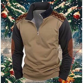 Homme Sweat-shirt Sweat-shirt quart de fermeture éclair Noir Rose Claire Rouge Bleu Marron Demi-zip Bloc de Couleur Uni Cadeaux de Noël Quotidien Fête Polyester Noël Streetwear Occasionnel Hiver