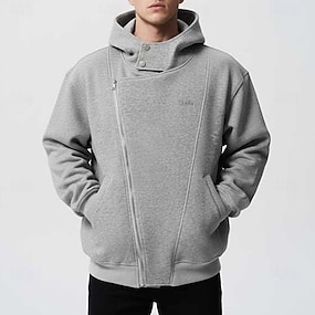 Homme Sweat à capuche Sweat à capuche zippé intégral Noir Gris À capuche Uni Zip Up Avec Poches Sport & Loisir Quotidien Fête Polyester Streetwear Basique Occasionnel Printemps Automne Vêtement Tenue