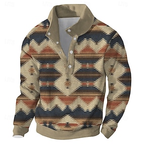 Homme Géométrique Sweatshirt Sweat-shirts manche longue Sweat-shirt Henley Imprimé Graphique Fête Sortir Festival Boucle Imprimé Automne Hiver