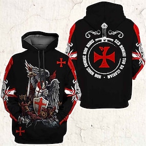 Homme Chevaliers Templiers Impressions Graphiques Croix Sweat à capuche Sweats à capuche Sweatshirt Streetwear Designer Occasionnel Grand et Long manche longue À capuche Quotidien Sports Noir Imprimé