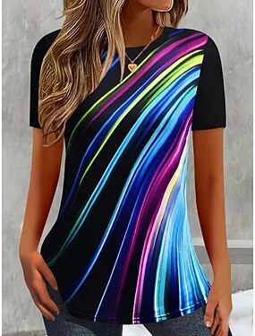 Femmes T-shirt Imprimé A Ombre Graphique Géométrique Élégant Classique Occasionnel Manche Courte Col en V Hauts Réguliers Occasionnel Quotidien Bleu Rose Claire Violet Vert Été Printemps