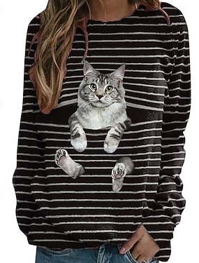 Femmes Pull Streetwear Occasionnel Animal Col ras du cou Tricoté manche longue Hauts Réguliers Tricoter Quotidien Fête Sortir Noir Blanche Automne Hiver