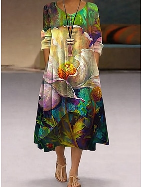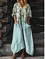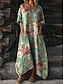 Robe Maxi Femme Lin Similaire Respirant Léger Kaftan Manches 3/4 Col Rond Robe Décontractée Robe A Ligne Bohème Coupe Régulière Graphique Abstrait Blanc Bleu Vert Kaki Printemps Automne