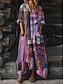 Robe Maxi Femme Lin Comme Respirant Légère Kaftan Manche 3/4 Col Rond Robe Décontractée Robe Tunique Boho Coupe Régulière Graphique Géométrique Abstrait Jaune Rose Bleu Orange Printemps Automne