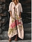 Femmes Robe maxi Robe d'Été Robe Plissée Vacances Occasionnel Boho Sortir Plage Coupe Ample Fleuri Graphique Abstrait Manche 3/4 Col en V Rose Claire Bleu Orange