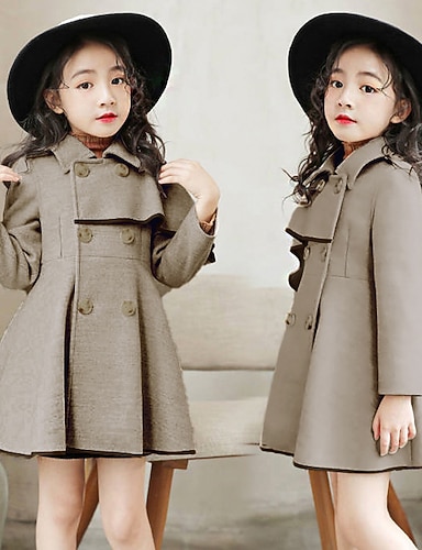 Trench-coat Vêtements d'extérieur Enfants Fille Plein manche longue Poche Manteau Formel Actif Adorable Kaki Hiver Automne 3-12 ans