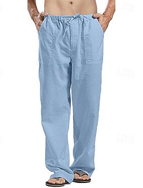 Homme Pantalons en Lin Pantalons Pantalon d'été Pantalons de Plage Cordon de serrage Avec Poches Ceinture Élastique Uni Confort Respirant Longueur complète Quotidien Vêtements de rue Mode Décontract