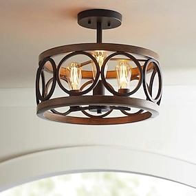 lustres à tambour luminaires suspendus éclairage suspendu rustique plafonnier métal noir mat grain de bois 110-240v