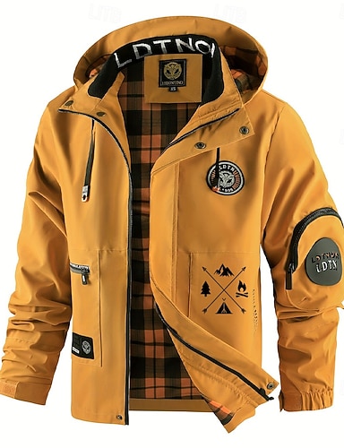Homme Graphique Montagne Coupe-vent Veste à capuche Parka Imperméable Coupe-vent Multi-poches Occasionnel Extérieur Camping & Randonnée Capuche détachable Fermeture intégrale Manteaux d'extérieur