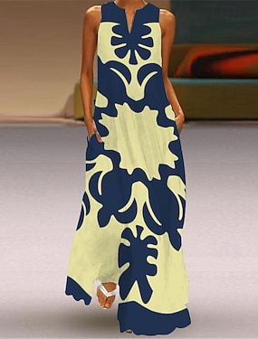 Femmes Robe Longue Maxi Robe Robe Fleurie Robe Imprimée Mode Moderne Extérieur Sortir Week-end Coupe régulière Fleuri Sans manches Col ras du cou Col en V Jaune Vert foncé Bleu de minuit Rose rouge