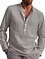 Homme Chemise Chemise en lin Chemise popover Chemise d'été Tenue de plage Chemise Décontractée Uni Vacances Occasionnel Noir Blanche Rose Claire bleu marine manche longue Henley Printemps & Été