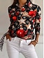 Noël Femmes Chemise Graphique Arbre de Noël Motif de flocon de neige Élégant ancien Fête manche longue Col de chemise Hauts Réguliers robe demoiselle d honneur Travail Tenue de soirée Boutons Rouge
