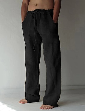 Homme Pantalon en lin Pantalon pantalon été Pantalon de plage Cordon Taille elastique Jambe droite Plein Confort Respirable Toute la longueur Casual du quotidien Vacances Mode Style classique Noir