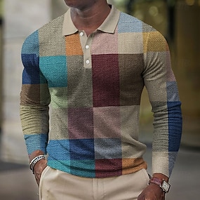 Homme A Ombre Géométrique Polo Chemise de golf manche longue Polos Chemises à Col Occasionnel Vêtement décontracté de travaile Tenue de soirée Tenue Quotidienne Impression 3D Boutons Printemps