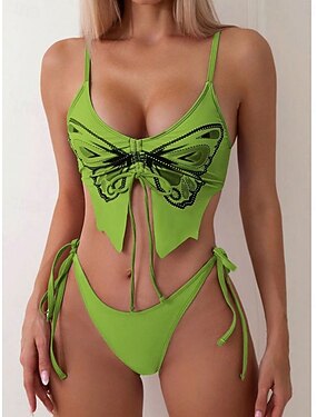 Maillot de bain 2 pièces bikini femme à nouer sur le côté ajusté sans dos vacances plage papillon col en V sans manches